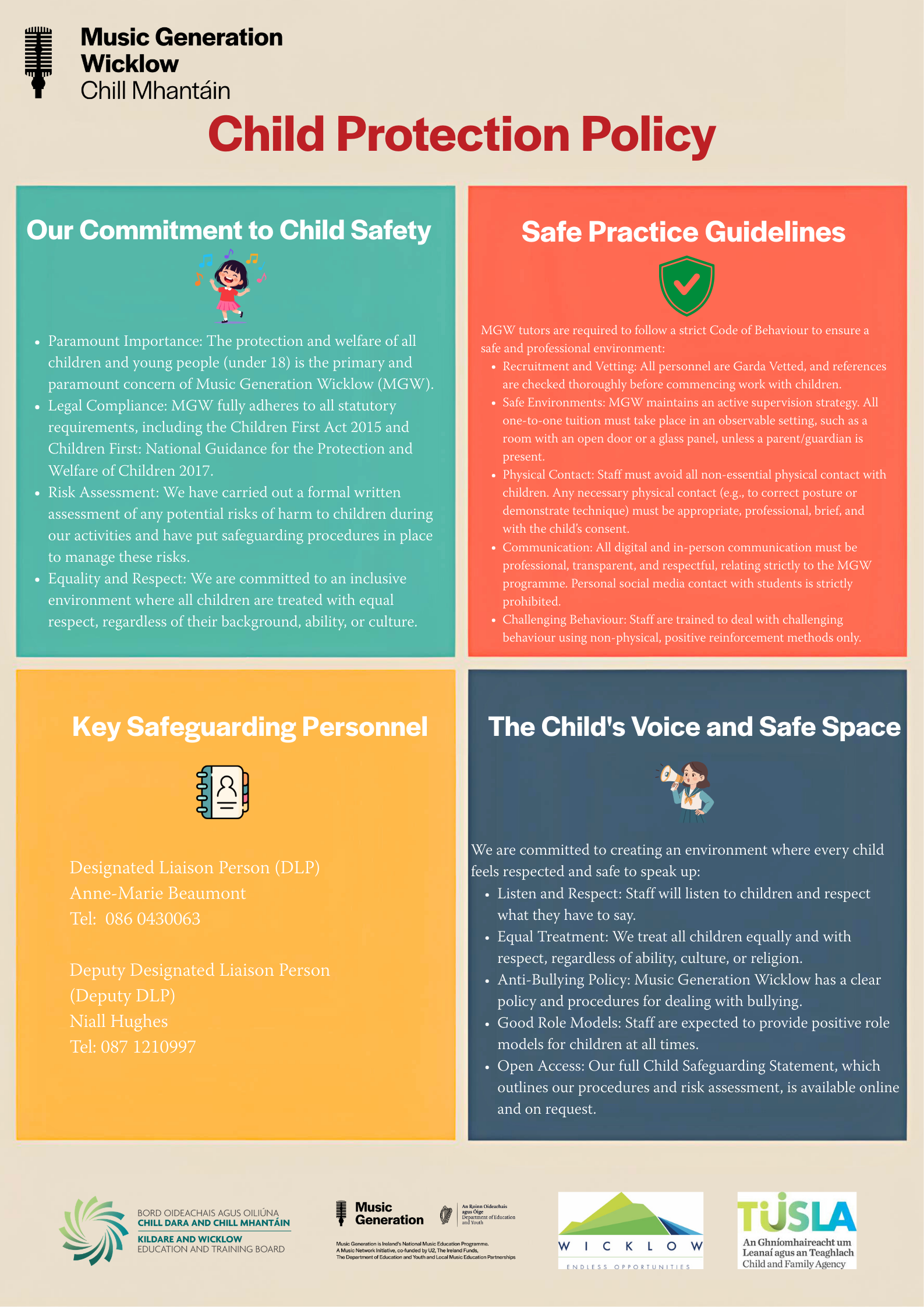 Established in 2012 Music Generation Wicklow is dedicated to transforming the lives of children and young people up to the age of 18 across County Wicklow by providing access to high-quality, affordable, and accessible performance music education. As part of Music Generation, Ireland's National Music Education Programme, our core mission is to ensure every young person, regardless of their background, has the choice and chance to participate in music. We passionately believe in the innate artistry and musical potential of every child.